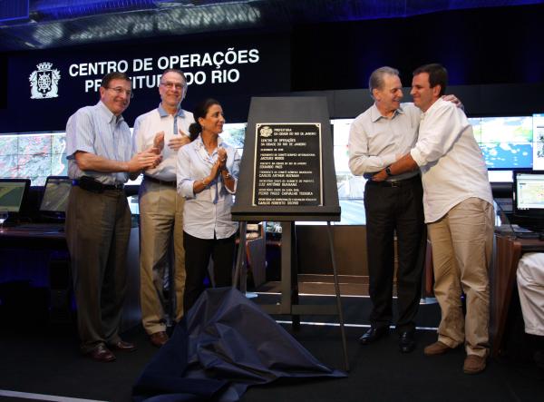 O prefeito Eduardo Paes inaugurou na manhã desta sexta-feira, dia 31, o Centro de Operações Rio – uma espécie de quartel general da Prefeitura, que integra cerca de 30 órgãos municipais e concessionárias, e já entrará em funcionamento neste Réveillon. Projeto pioneiro no Brasil e fundamental para a organização de eventos como a Copa do Mundo e os Jogos Olímpicos, o moderno centro iniciou sua operação na presença do presidente do Comitê Olímpico Internacional (COI), Jacques Rogge. Também participaram da inauguração o diretor de Jogos Olímpicos do COI, Gilbert Felli; a presidente da Comissão de Coordenação dos Jogos Olímpicos Rio 2016, Nawal El Moutawakel; o presidente do Comitê Rio 2016, Carlos Arthur Nuzman, e secretários municipais.